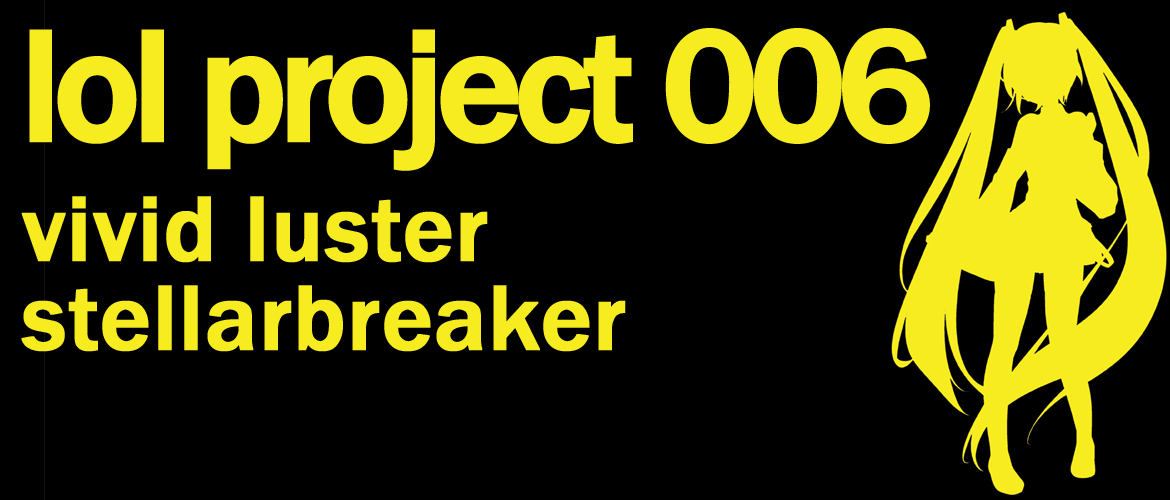 ![]() lol project 新作は、前作に続き初音ミクを起用。 新曲「vivid luster」「stellarbreaker」の両A面に加え、 yue (laughing out loud) による「Nightbreaker」のRemixを収録。 ミクドラムン×ミクトランスでお送りする、 lol project第6弾 New Single。 ![]() Label///lol project Title///lol project 006:vivid luster/stellarbreaker Catalog///LOCD-1063 Format///CD-R Disc///1CD Total Time///33:37 Release///2014.08.17 Price///\500 Event///Comic Market 86 Circle Space///8/17(日)三日目・東ル-54ab「lol project×laughing out loud」 ※本作はコミックマーケット86限定頒布になります。 再販の予定はございませんので、ご了承ください。 また、持込数が少数となる為、早期完売の際はご容赦ください。※ ツイート